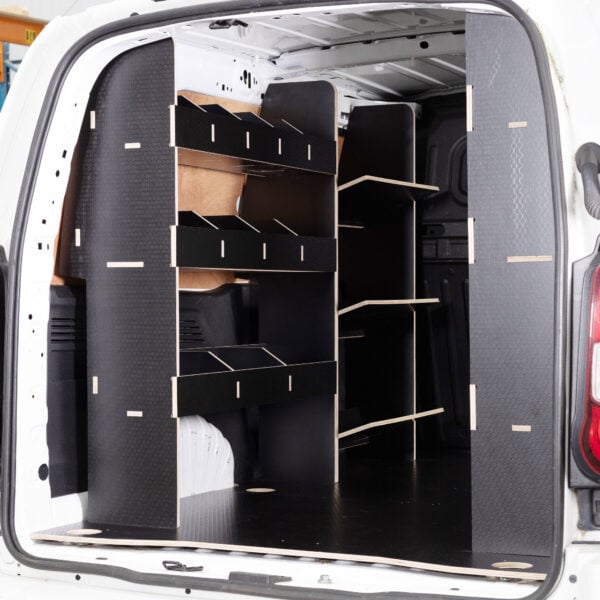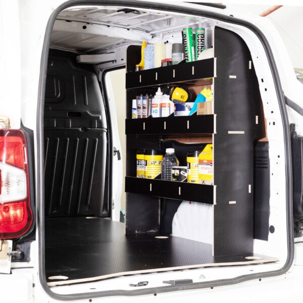 Systèmes de rayonnage pour véhicule utilitaire. 2 étagères modulaires conçues pour s’adapter à l’intégralité du côté conducteur du fourgon