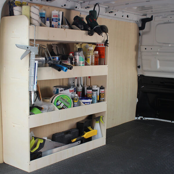 Système d’étagères conçu pour s’adapter aux fourgons Renault Trafic. 3 étagères modulaires, 2 pour l’intégralité du côté conducteur du fourgon et une pour le côté passager. Un système complet d’étagères pour fourgon permettant de maximiser pleinement la capacité de stockage de votre véhicule.