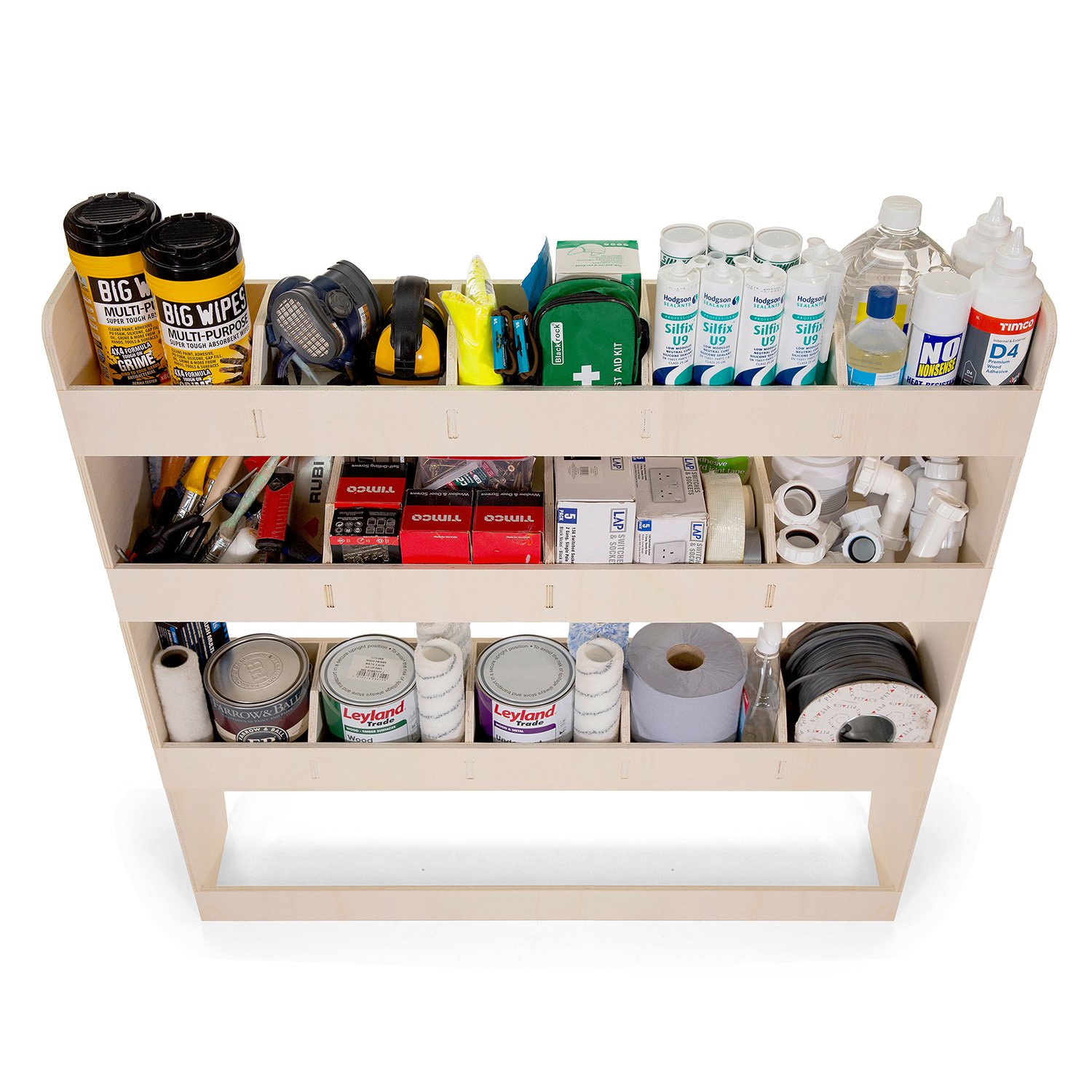 Système de rayonnage pour fourgonnettes Volkswagen Caddy. Ce produit se compose de Une étagère modulaire conçue pour s’adapter à l’avant du fourgon côté conducteur.