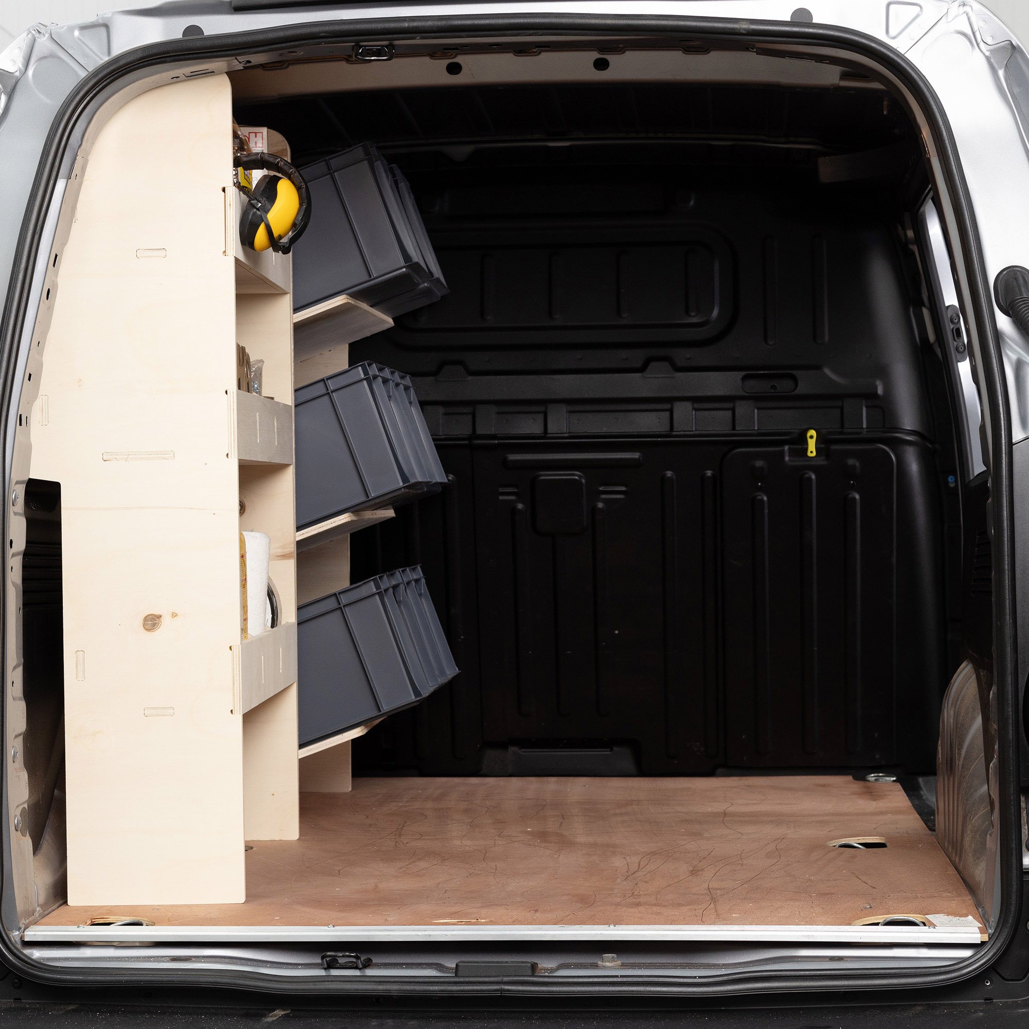 Système de rayonnage conçu pour s’adapter aux Volkswagen Caddy L1 (Standard) 2021+. Ce produit se compose de 2 étagères composées d’une unité de rangement pour boîte à outils et d’une étagère à plusieurs compartiments conçues pour s’adapter à l’intégralité du côté conducteur du fourgon.